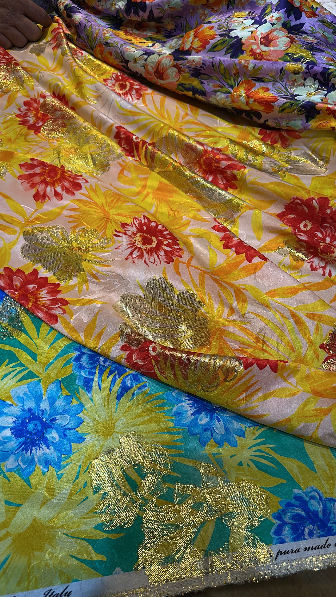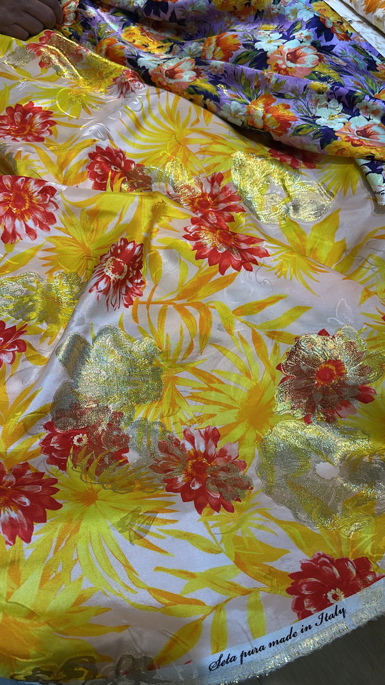 100% pure silk with lurex from Italy.