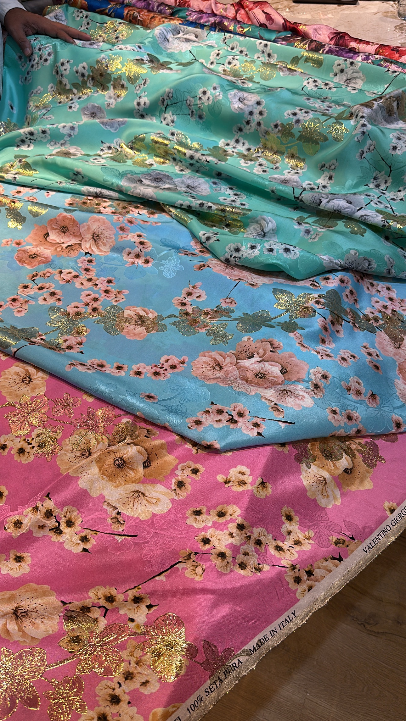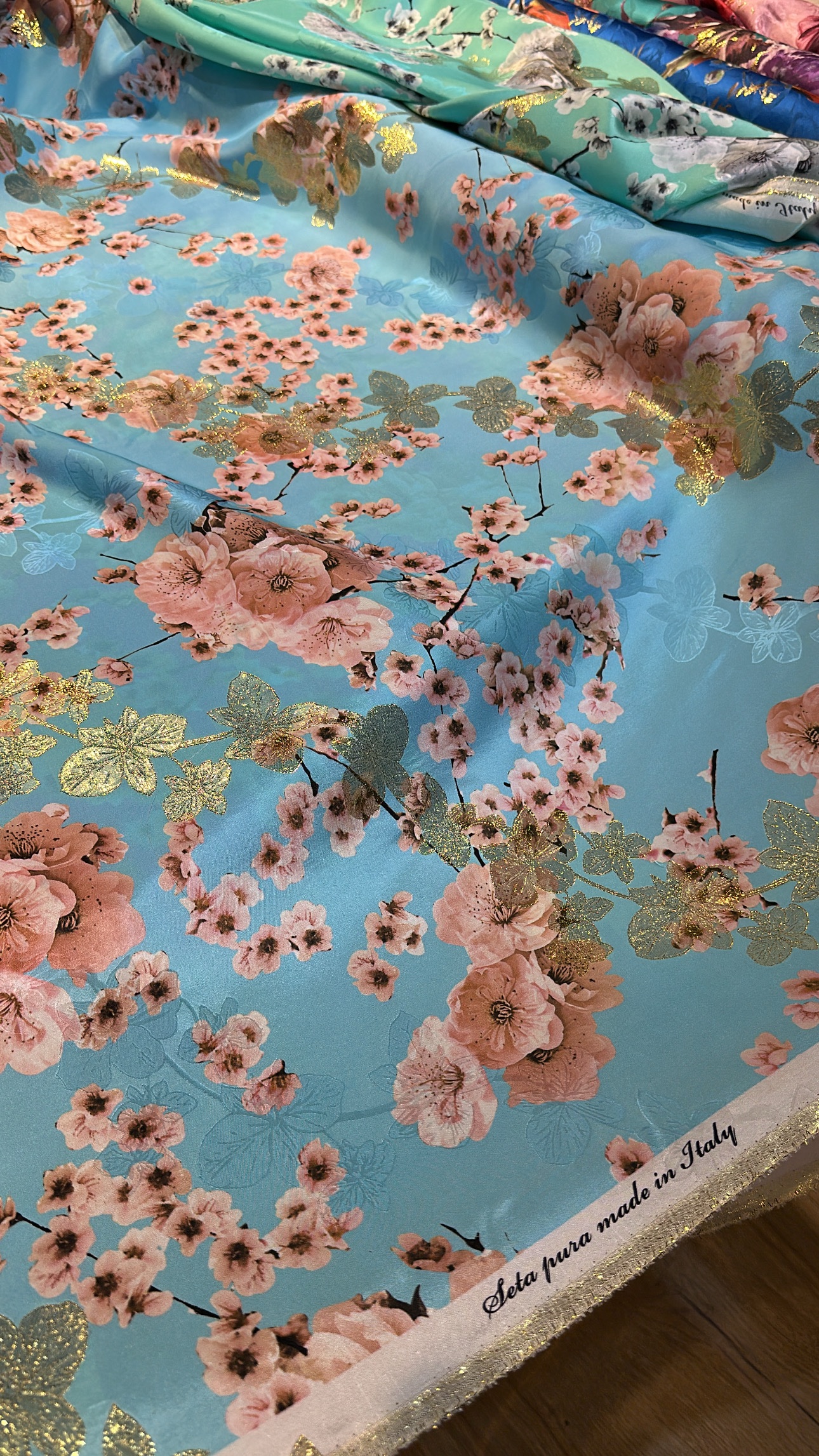 100% pure silk with lurex from Italy.