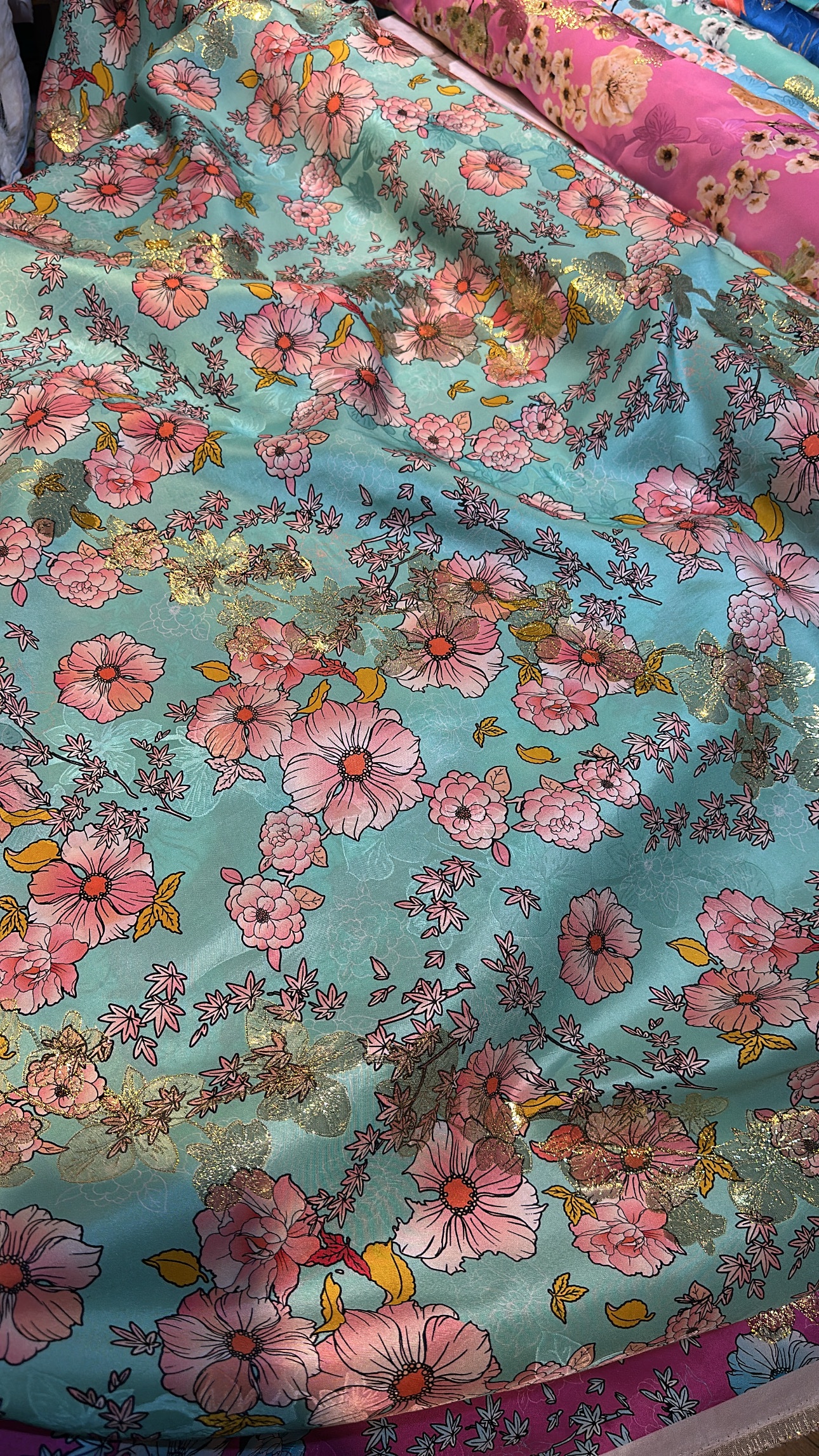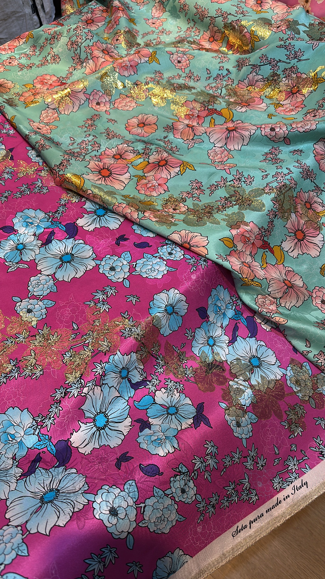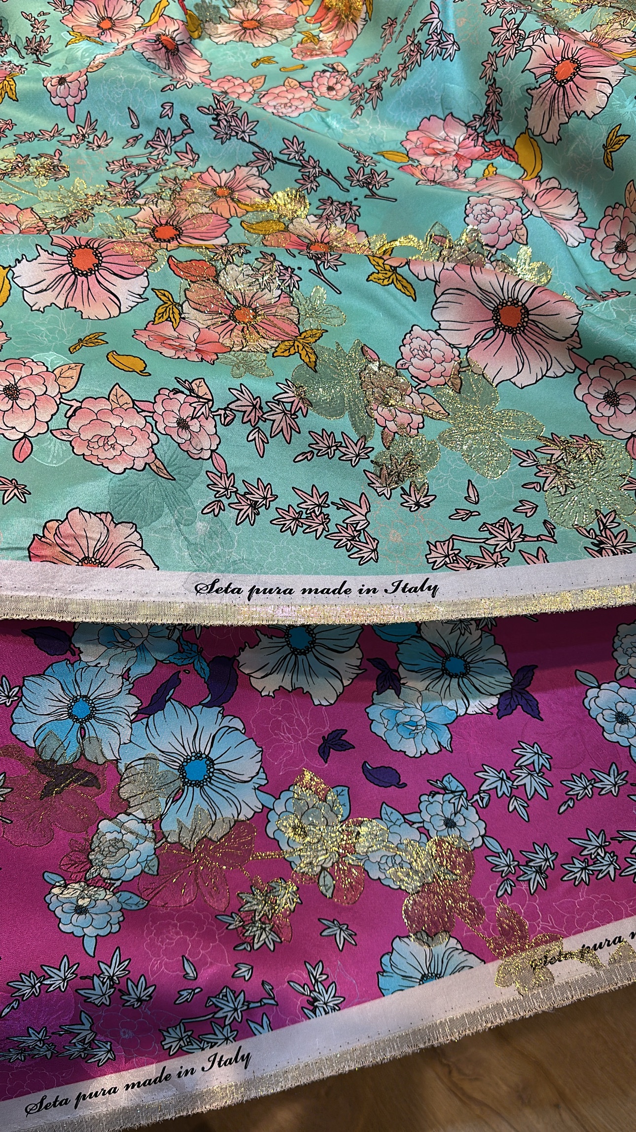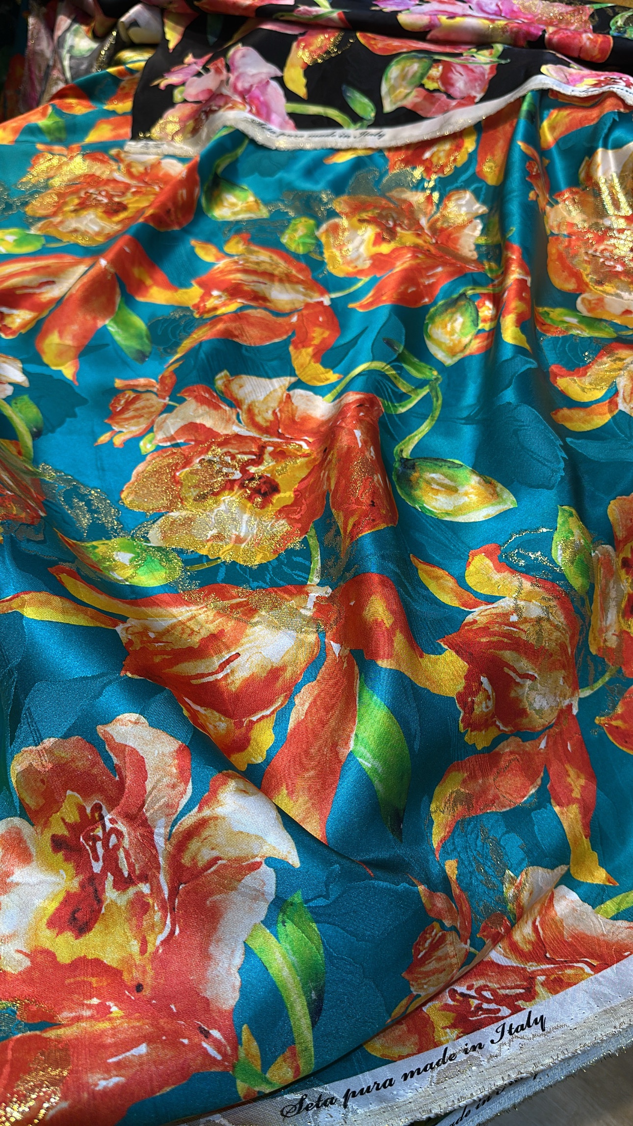 100% pure silk with lurex from Italy.