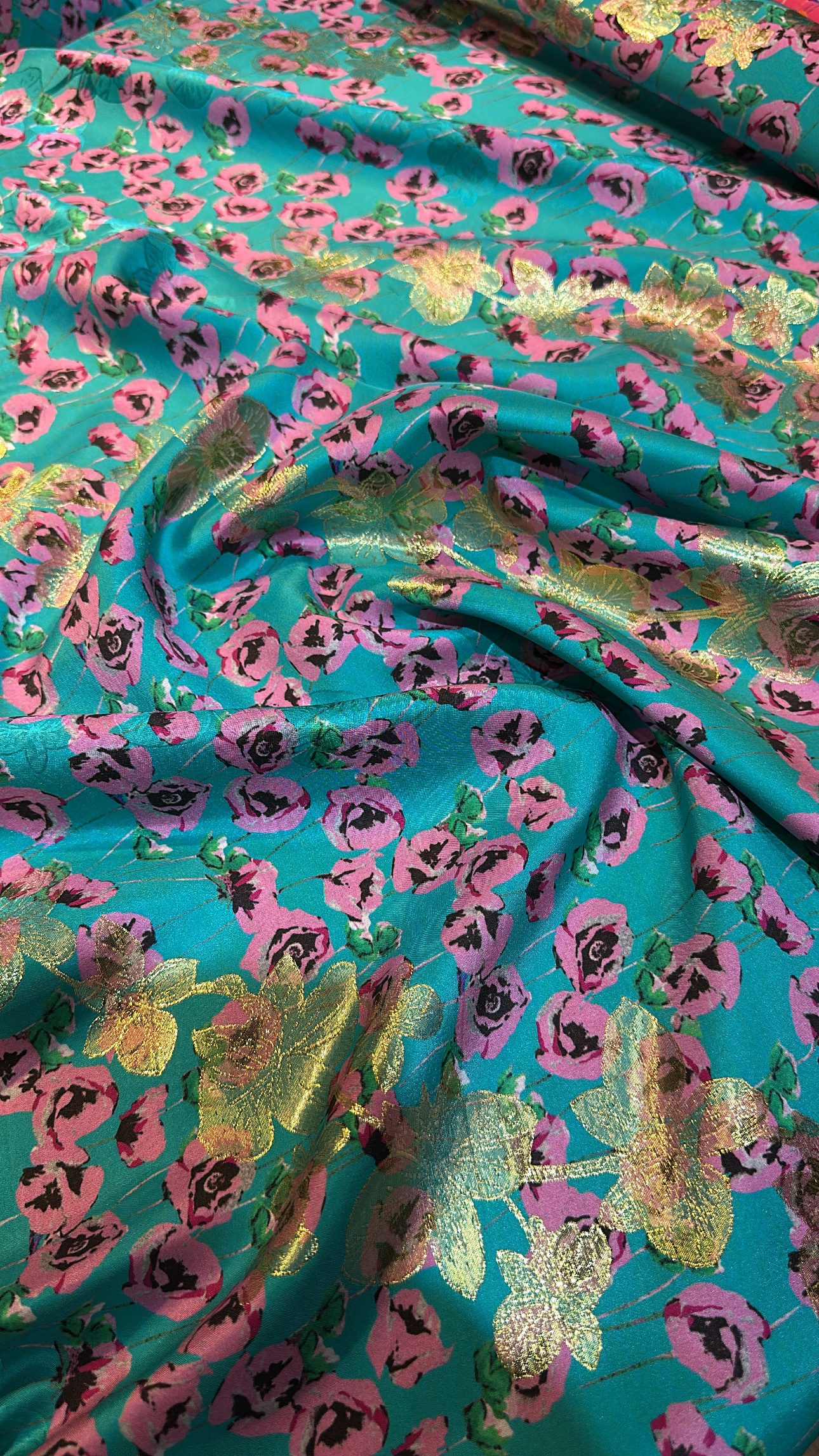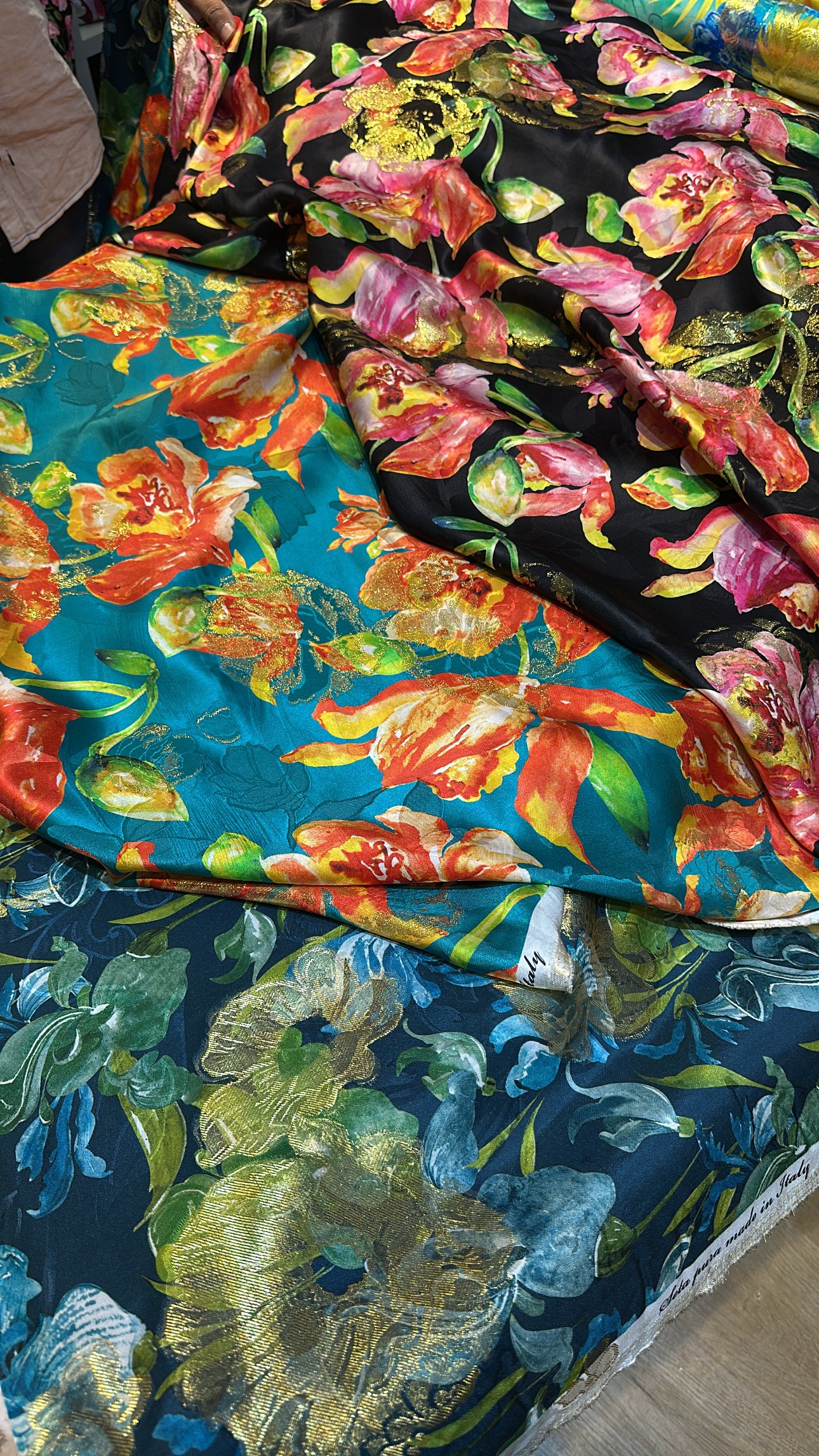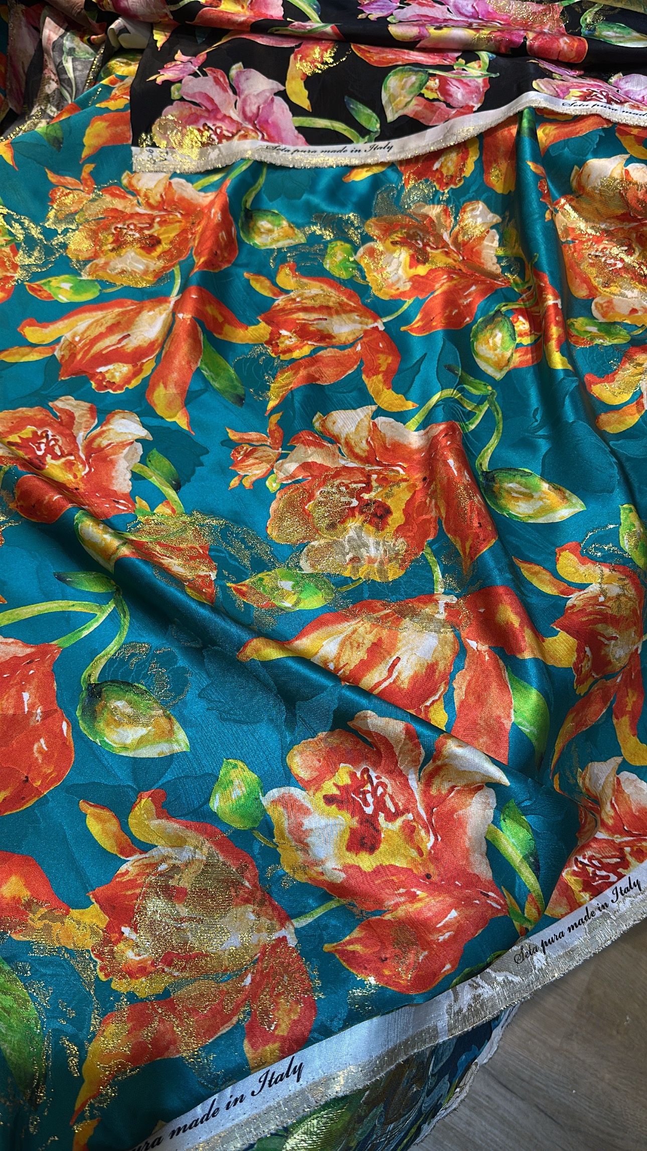 100% pure silk with lurex from Italy.