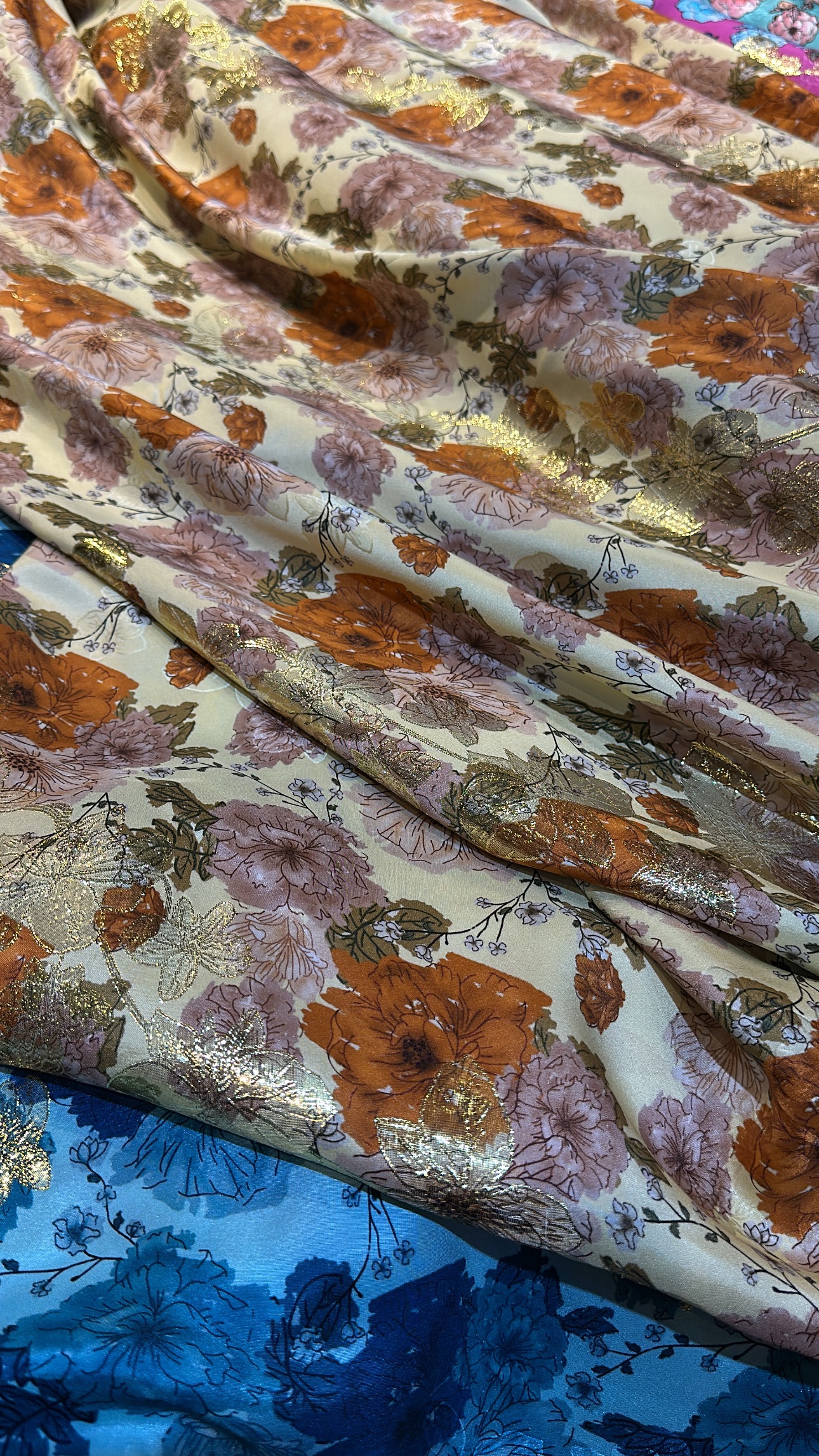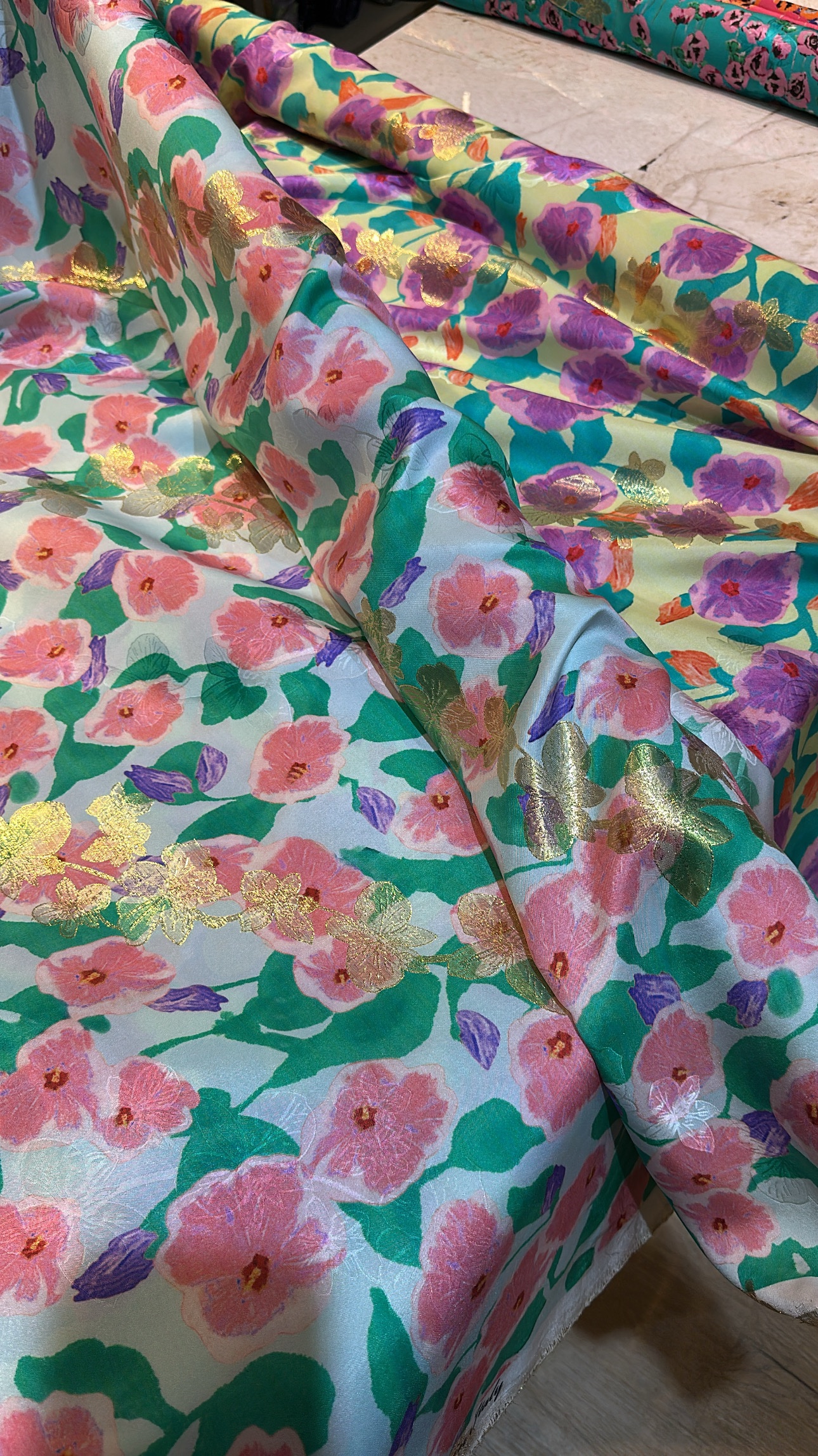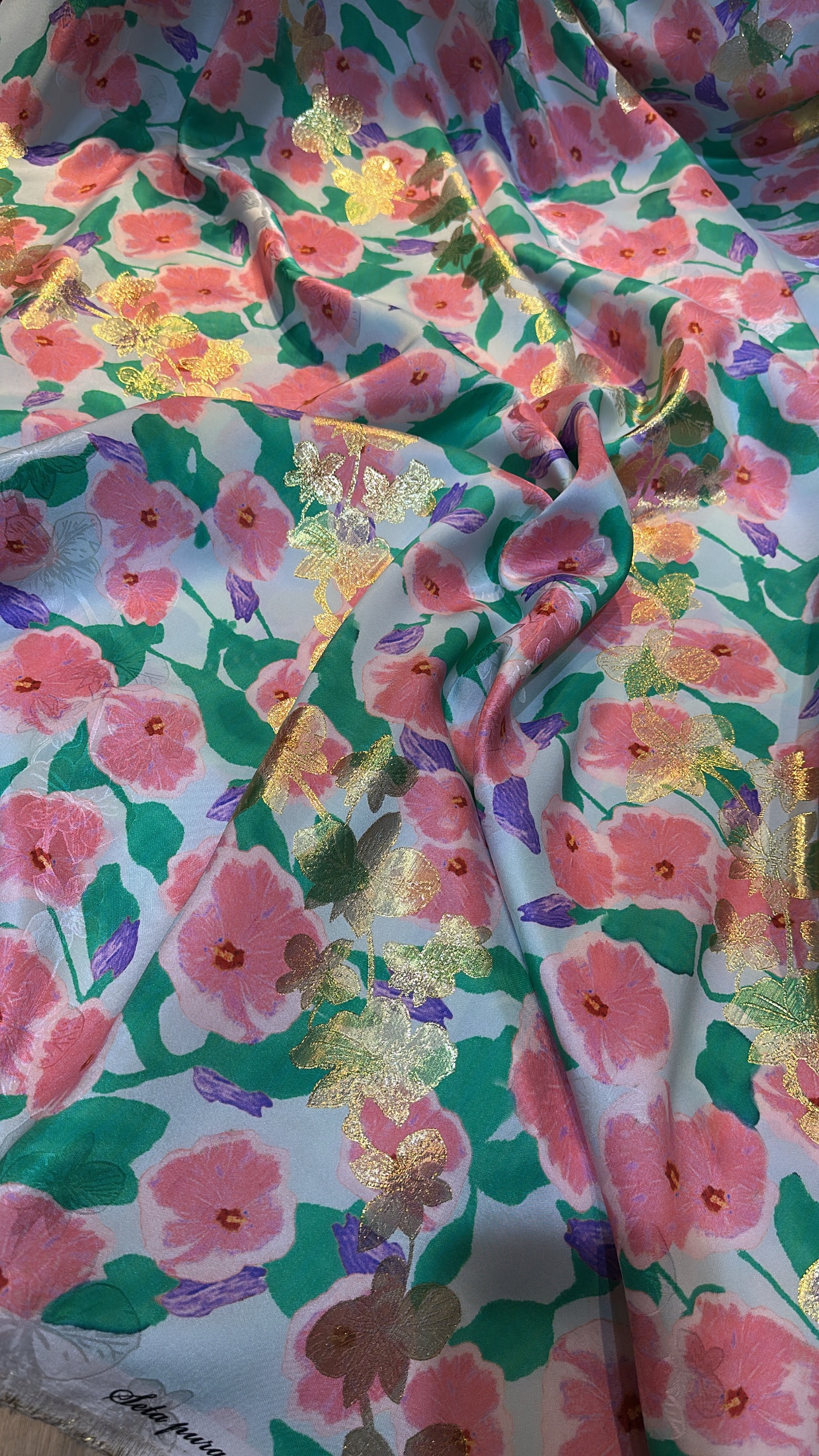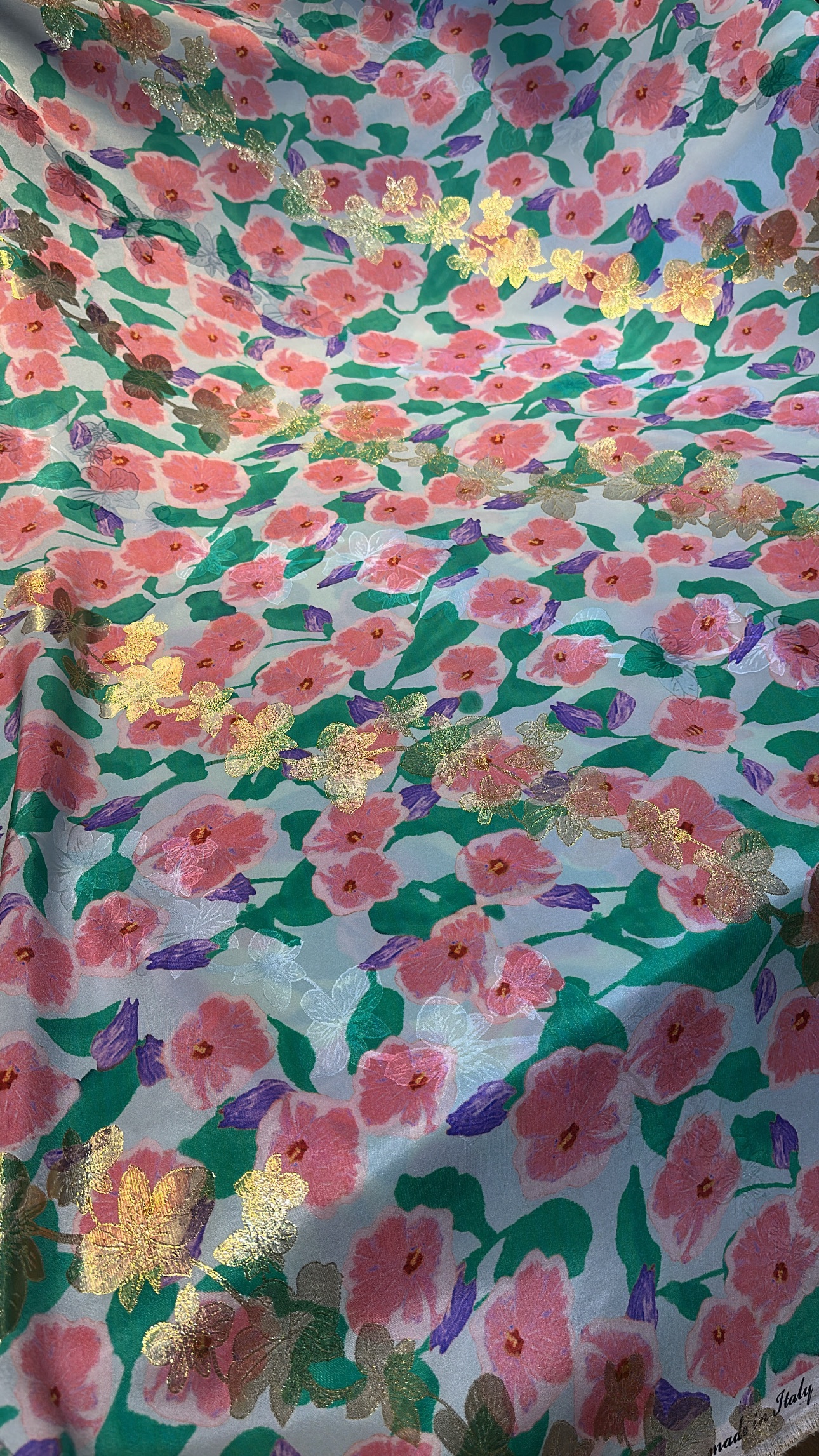 100% pure silk with lurex from Italy.