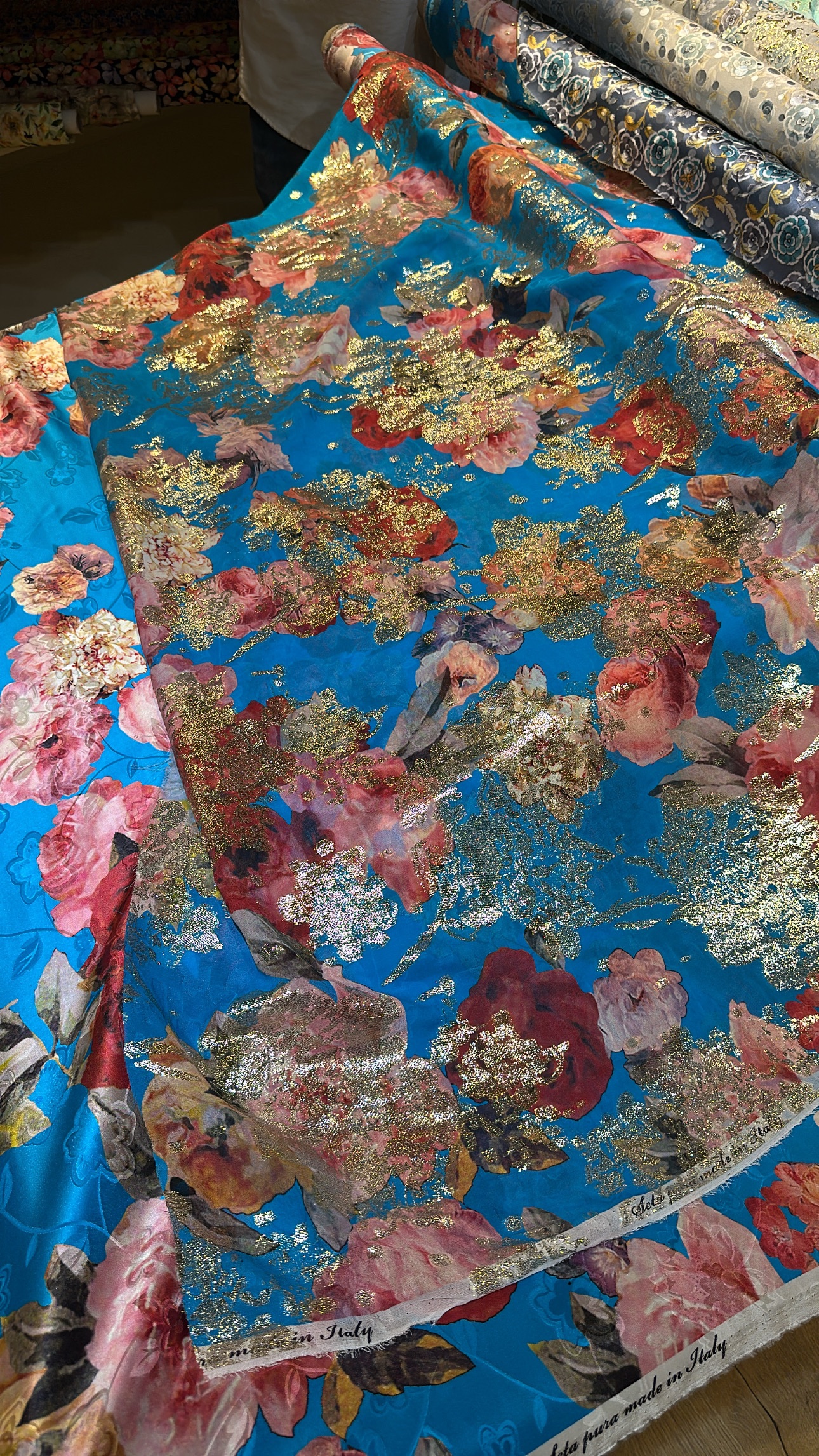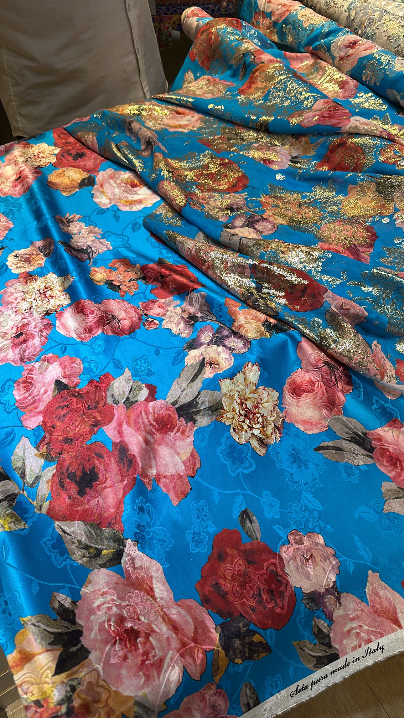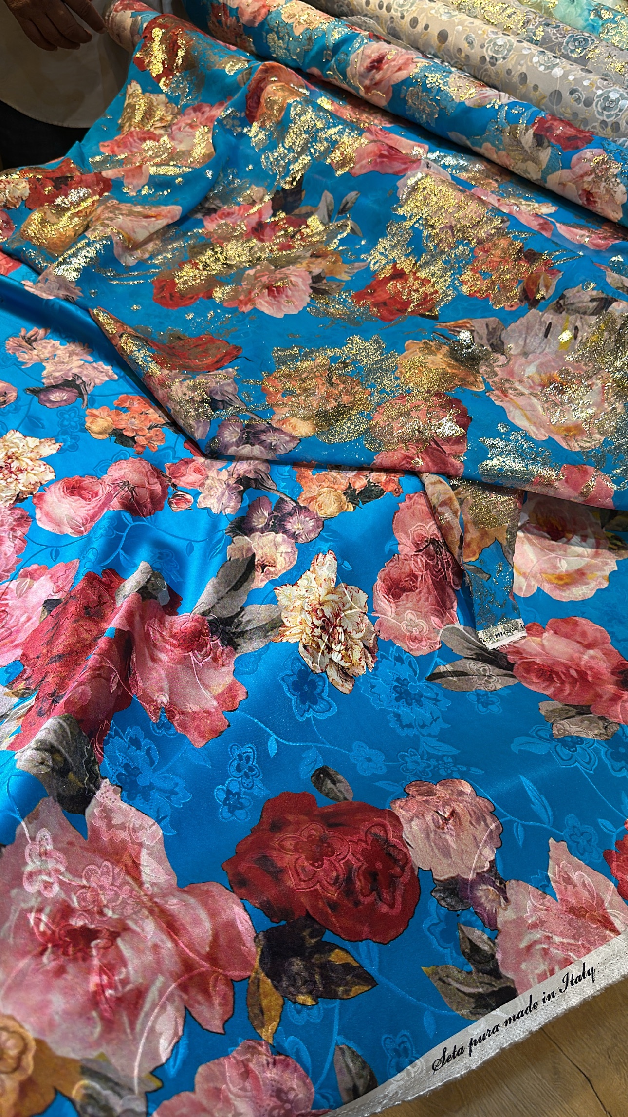 Set of 3 meters of chiffon georgette lurex with 3 meters Italian silk jacquard .